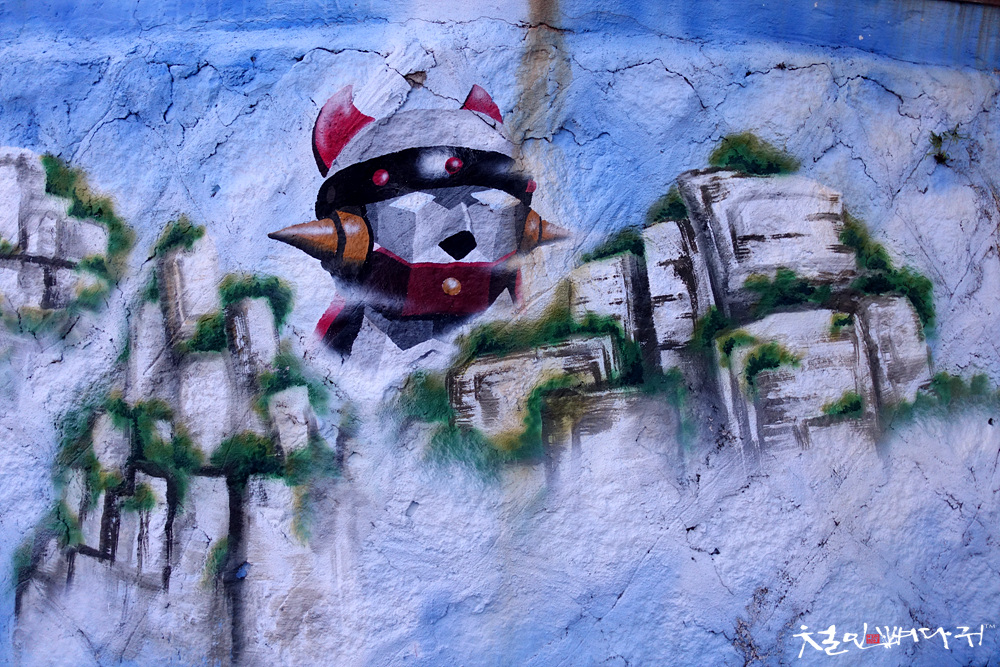 일방통행 도로부터 벽화들이 곳곳에 있습니다.