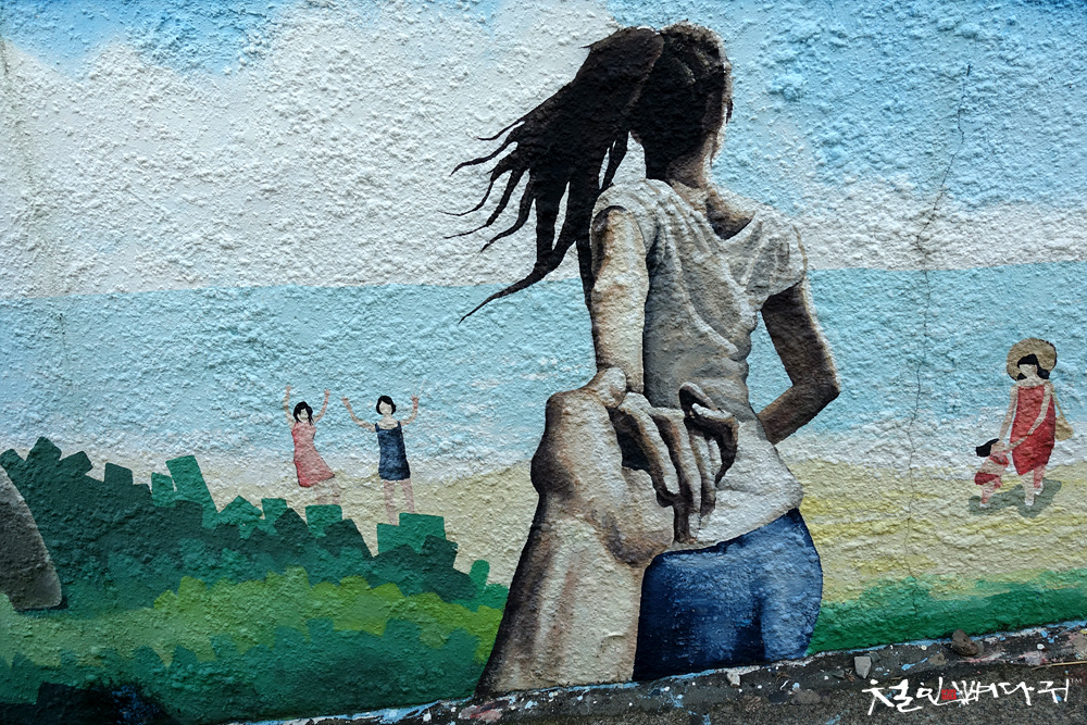 동피랑의 천사 날개는 그때와 다른 곳에 다른 형태로 그려져 있습니다.