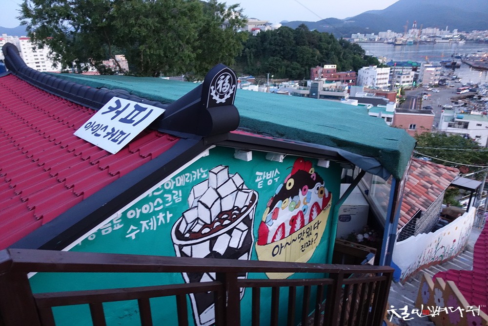 동피랑에서는 저녁을 먹기 전이라 너무 배고프고, 목마르고, 더워서