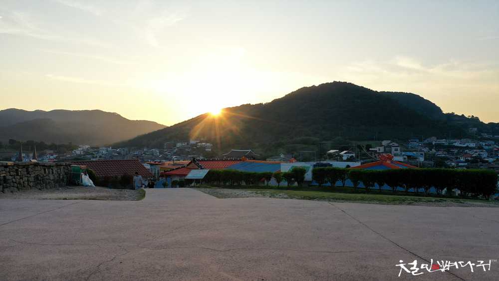 이곳 통영 동피랑벽화마을에서 저녁노을 지는 것을 보면서 드론 비행을 시작했습니다.