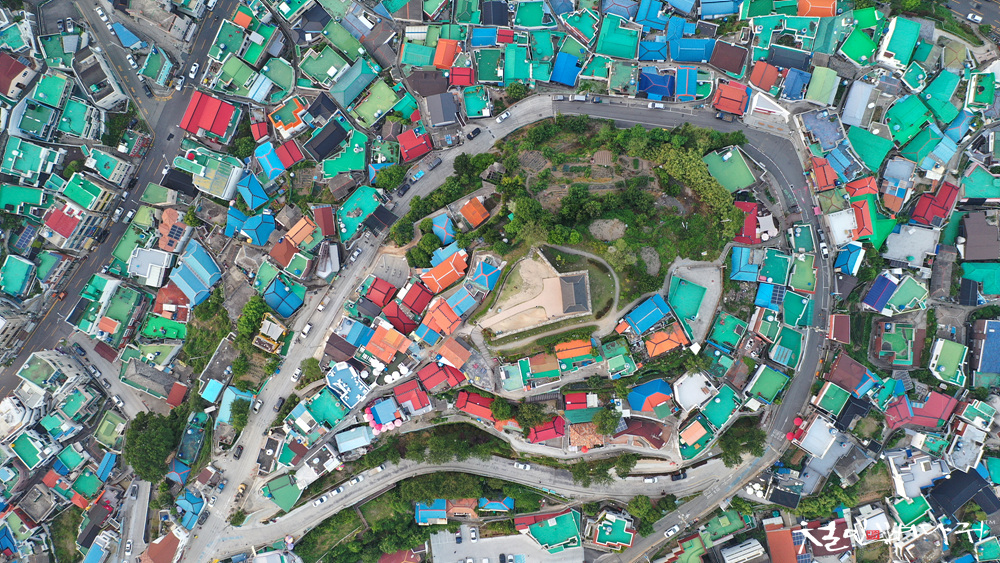 하늘에서 내려다 보는 통영 동피랑 벽화마을