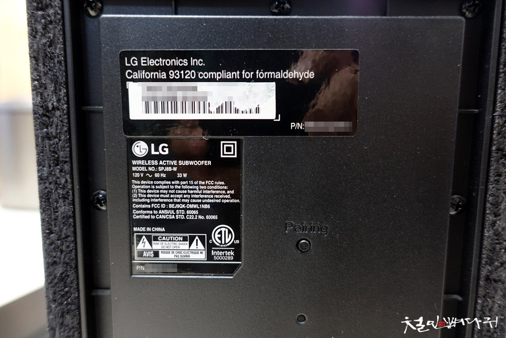 뒷면 중앙의 버튼은 사운드바와 패어링(연결)할 때 사용하는 것으로
