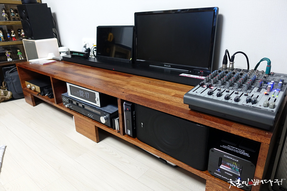 TV장을 내가 직접 만들었지만, SJ8 우퍼를 위한 맞춤형 가구장이 아닐까 싶은 생각이 들었습니다.