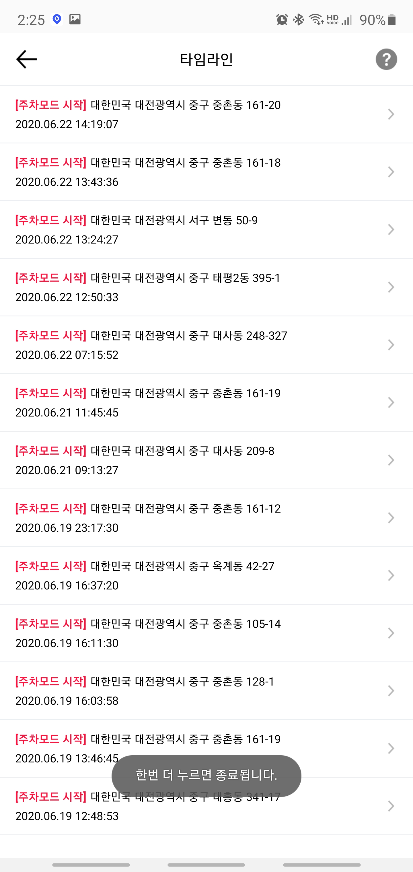 50개의 주차했던 정보를 볼 수 있습니다.