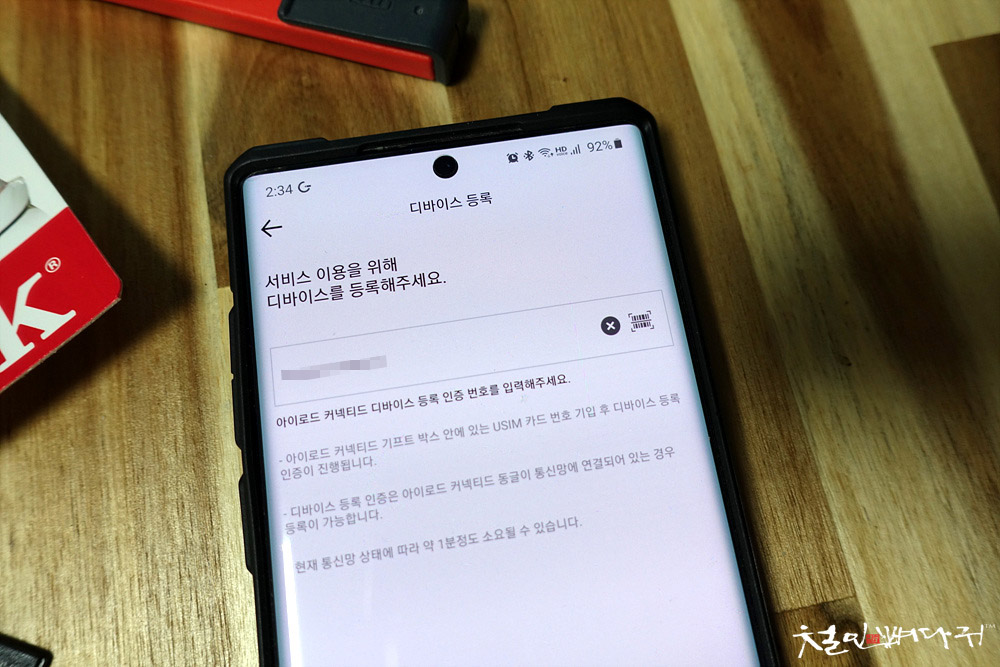 박스 안에 LG U+ 유심칩이 들어있고, 꽂아서 등록을 하면