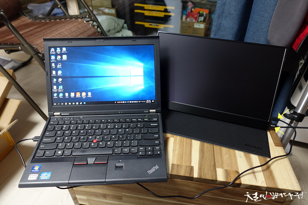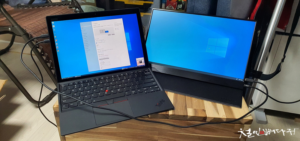 일반 노트북을 USB-A to USB-C로 포터블모니터와 연결을 했고,