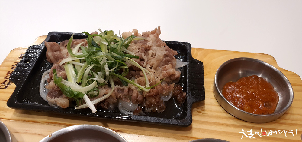 내가 주문한것은 돼지김치찌개반상 + 소삼겹살(추가) 입니다.