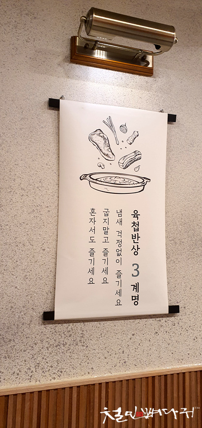 테이블에 육첩반상 먹는 방법이 있는데, 나는 고기 주문 안 해서 참고만 했습니다.