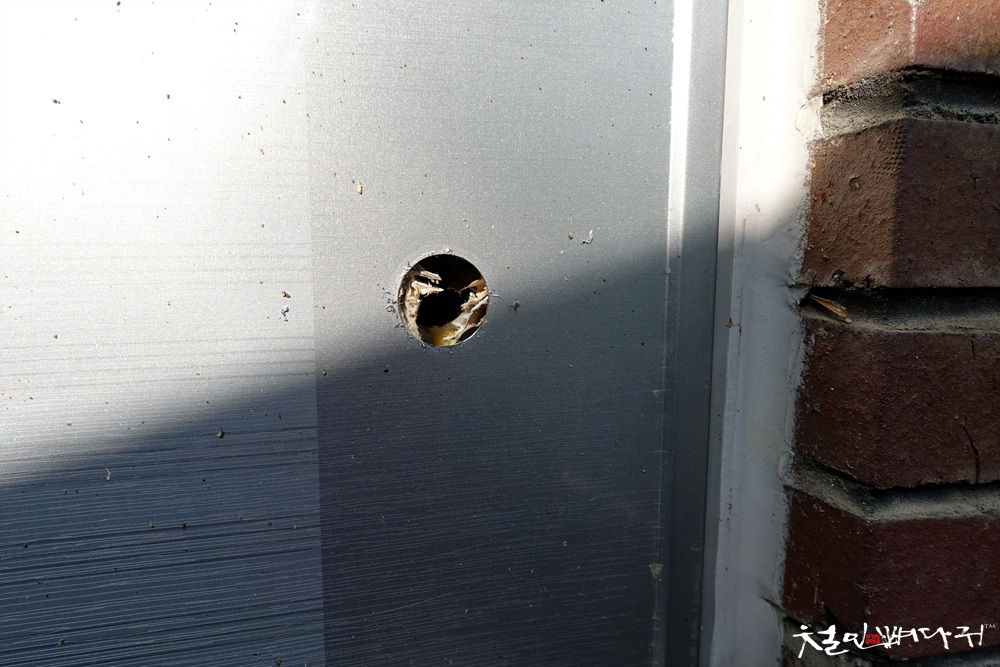 이번 설치할 곳은 처음 설치하는 곳이라, 도어락 설치에 필요한 구멍을 앞뒤로 뚫어주어야 합니다.
