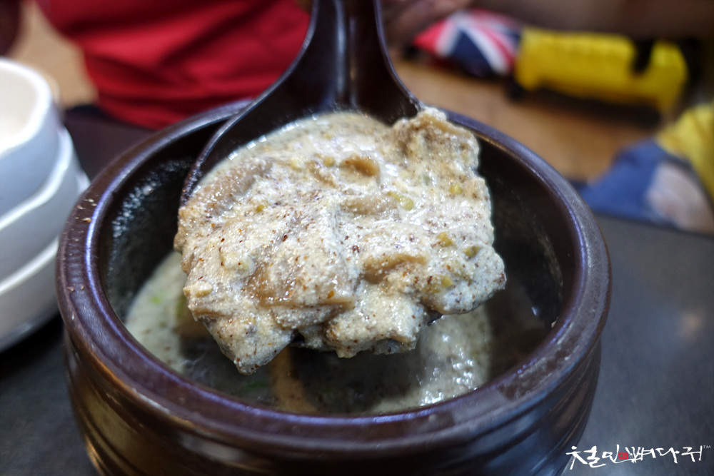 도토리로 만든 수제비와 들깨를 갈아서 만든 음식입니다.