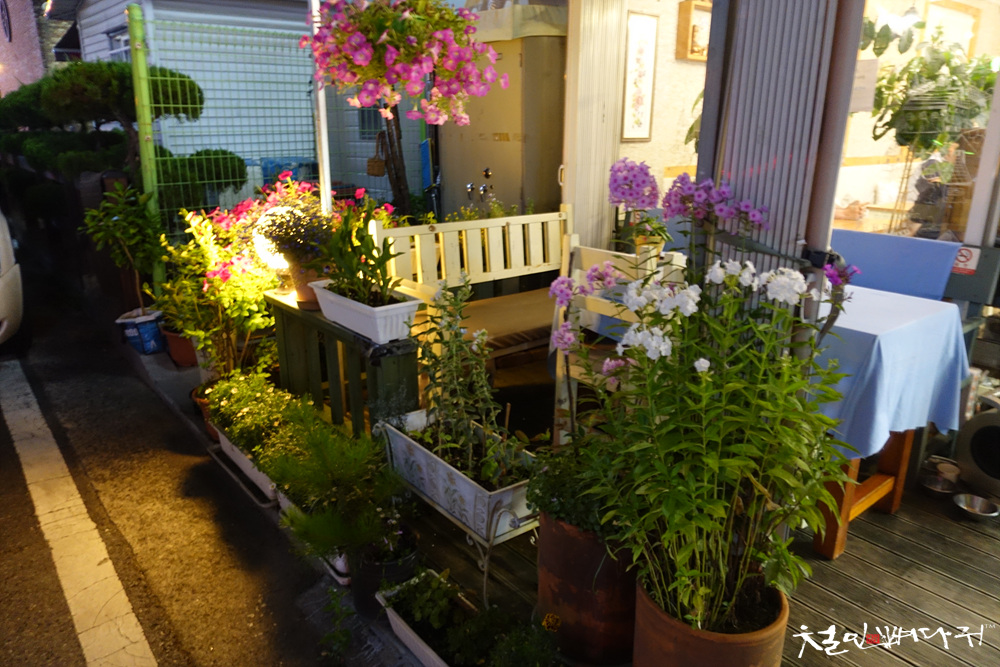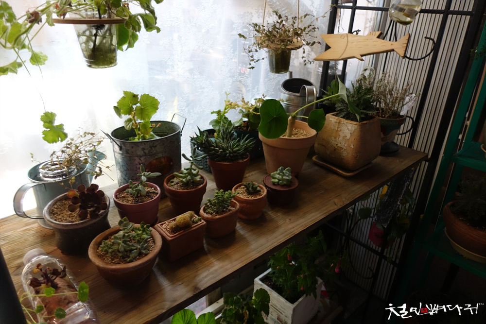 카페 외부에는 다육이를 비롯한 다양한 식물들이 잘 자라고 있어서 꽃집 같은 느낌도 있었습니다.