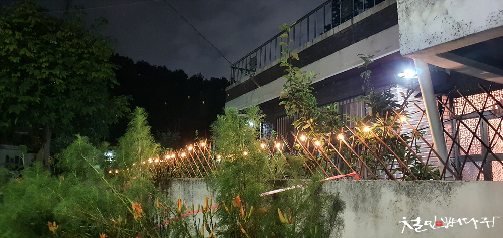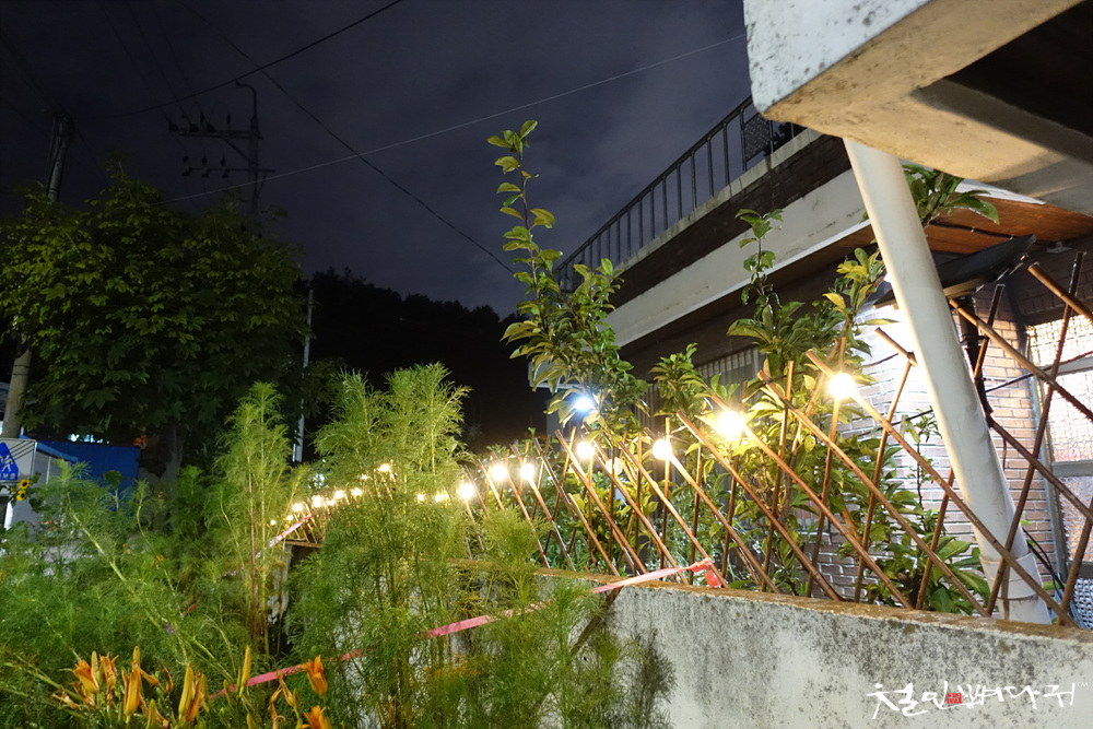 케이블타이로 고정해주었고, 낮에 충전하고 밤에 점등되는 상태로 세팅을 했습니다.