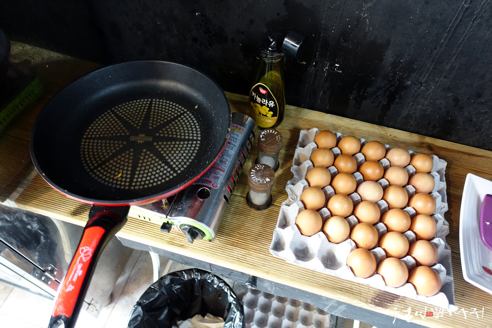 한쪽에 달걀프라이를 할 수 있어, 손님들이 직접 만들어 먹을 수 있기도 합니다.
