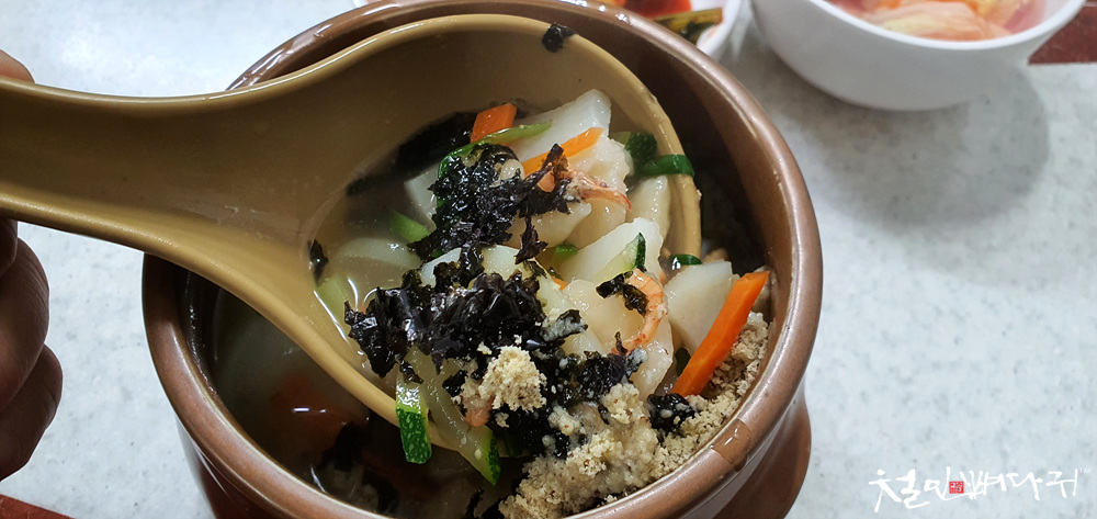 국물부터 한수저 먹어보고, 그릇을 들고 시원하게 한 모금 마셨습니다.