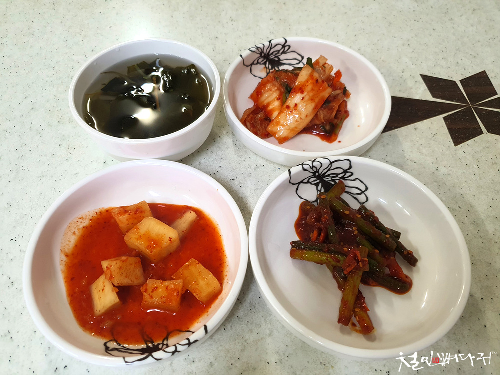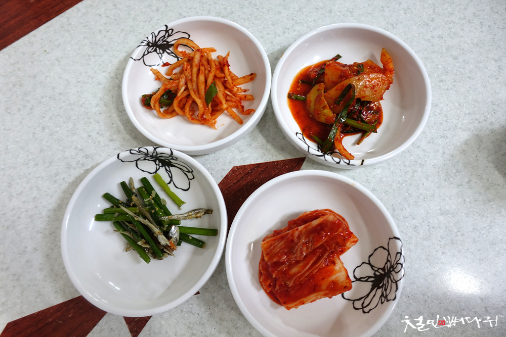 민물새우수제비 먹을 때보다는 한 가지 적게 나오네요.