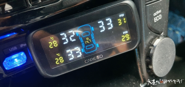 사진처럼 공기압이 기준치 아래로 떨어지면 숫자가 깜빡이면서 삐~ 삐~ 경고음이 울립니다.