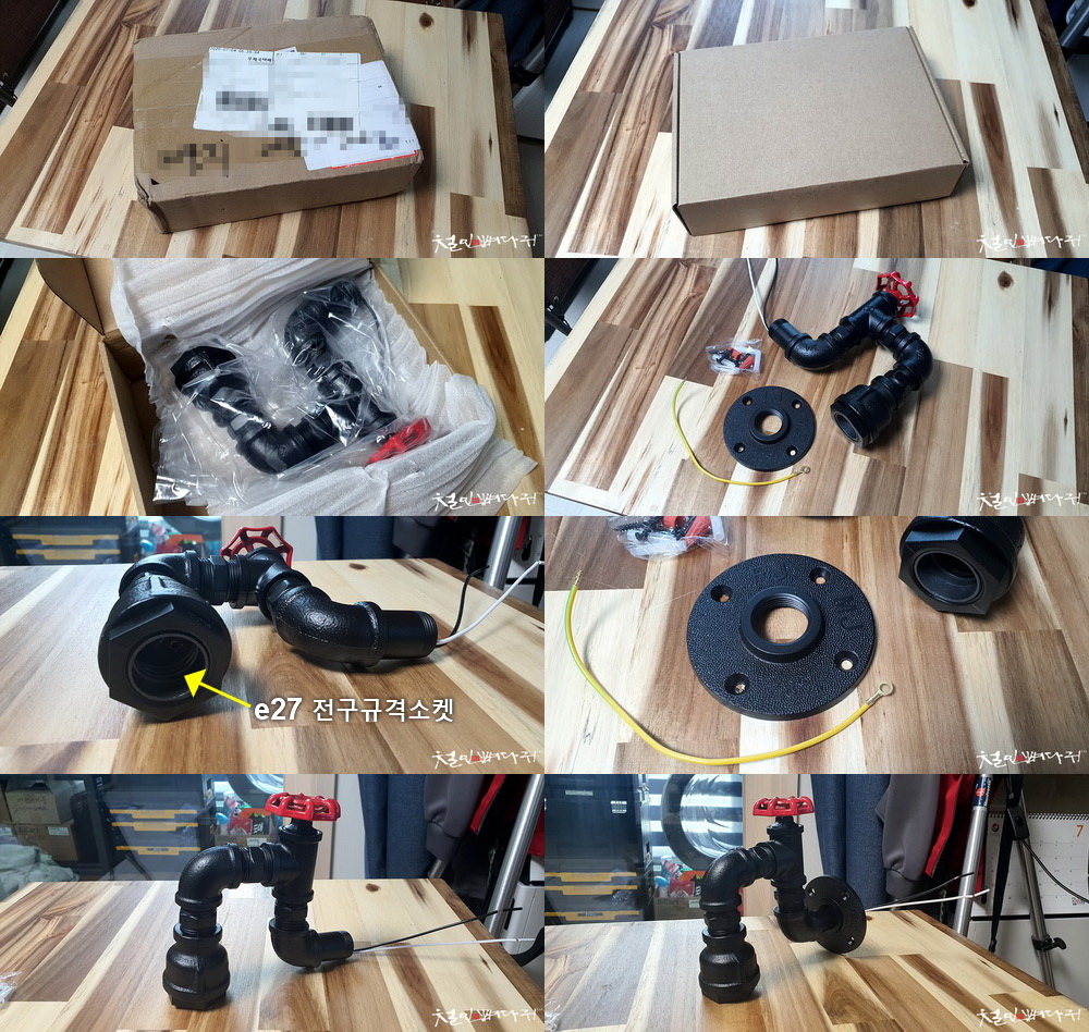 파이프조명에 기본적으로 e27소켓이 내장되어 있고, 전선이 뒤로 빠져 있어서
