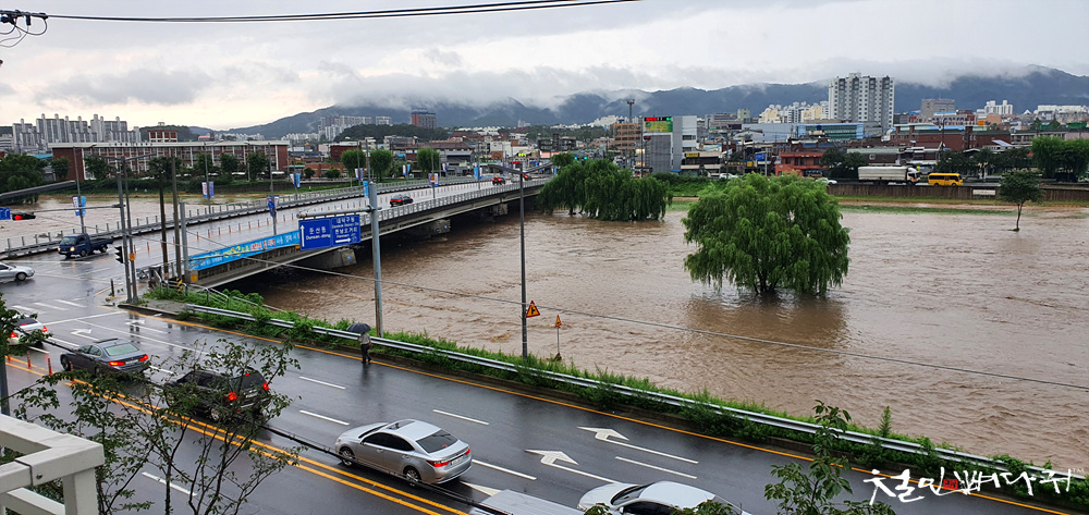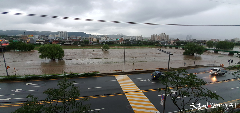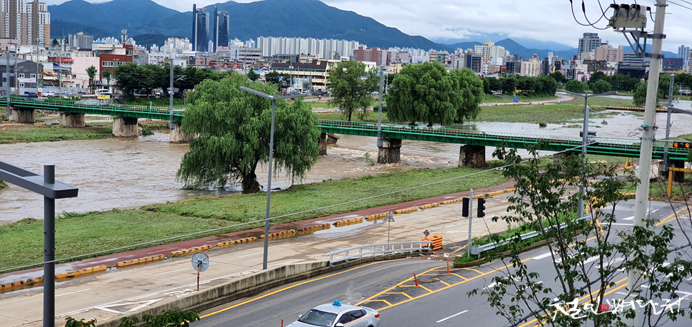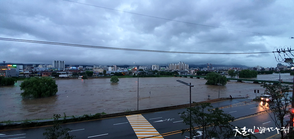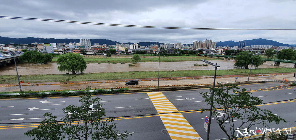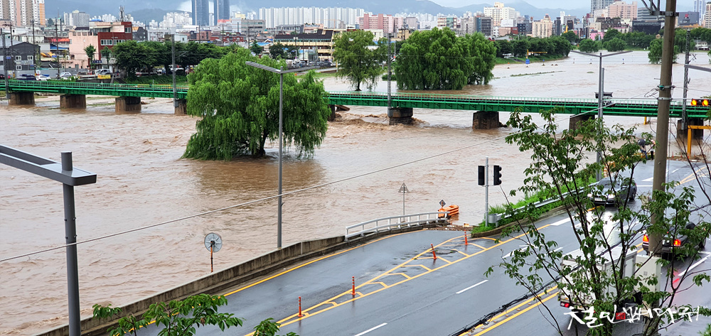 30년 전쯤 어릴 때, 바로 이 자리에서 봤었던 범람 위기의 대전천 모습을 다시 보게 될 줄 몰랐습니다.