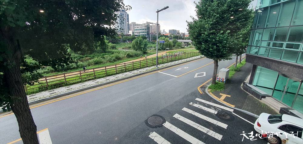 2층 창 밖으로 대전천이 내려다 보입니다.