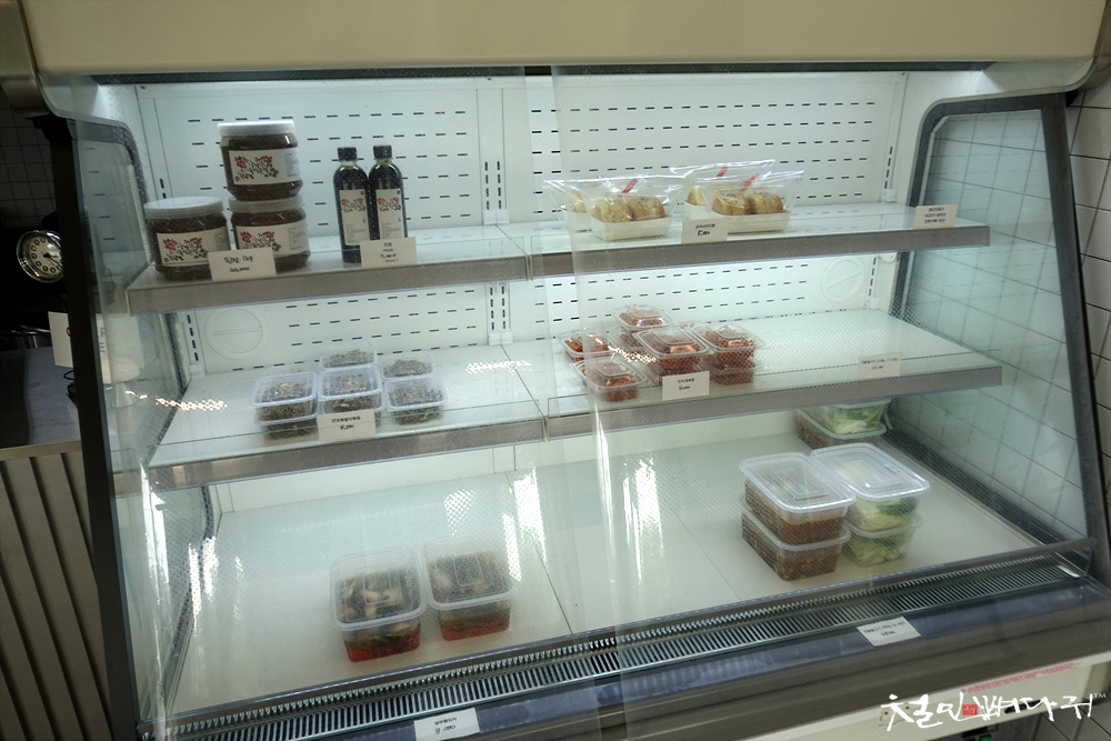 냉장 쇼케이스에는 만들어진 반찬들이나 된장 같은 것들이 있었습니다.
