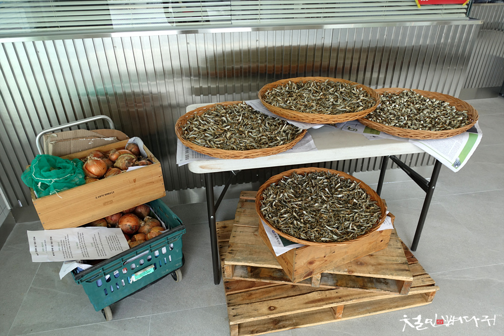 한쪽에 멸치를 말리고 있는 모습도 볼 수 있는데,