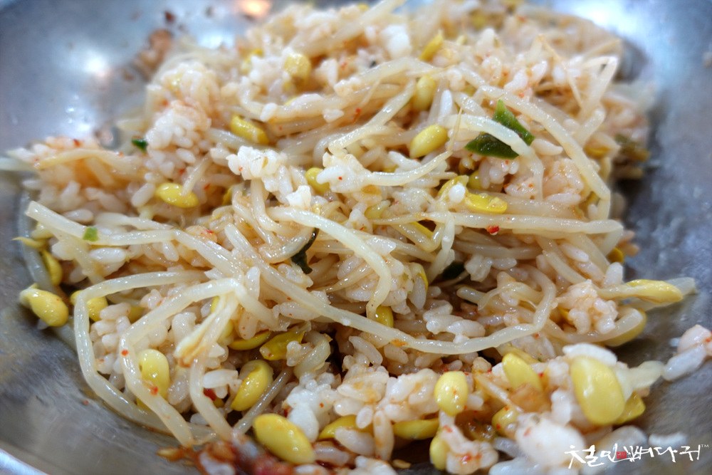 뜨거운 콩나물밥에 비빔장을 넣고 잘 비벼서 먹으면, 정말 맛있습니다.