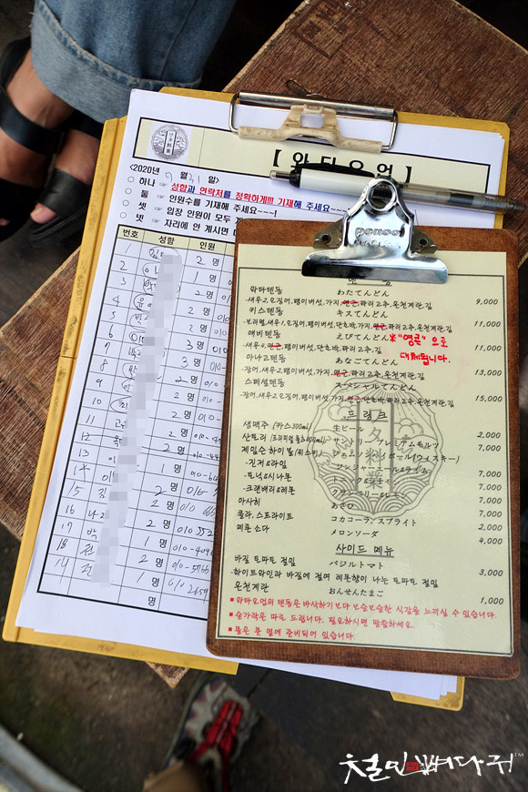 웨이팅 보드에 이름 적고 나는 혼밥 하러 왔으니 1 체크하고, 메뉴는 미리 선택해서 생각해두었습니다.