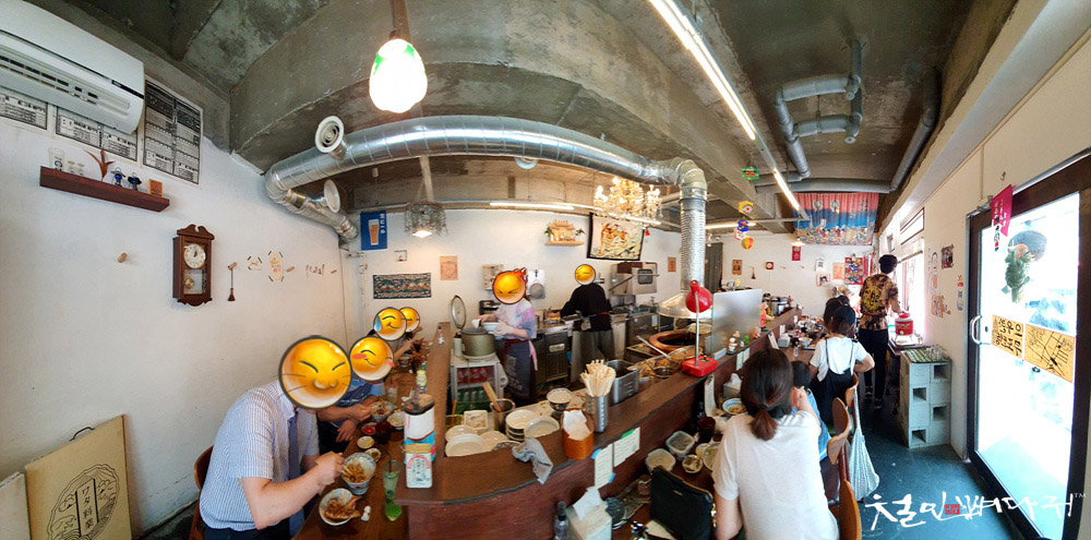 내부의 테이블은 바 형태로 되어 있어서 다른 손님들과 길게 앉아서 식사를 하는 구조이고,
