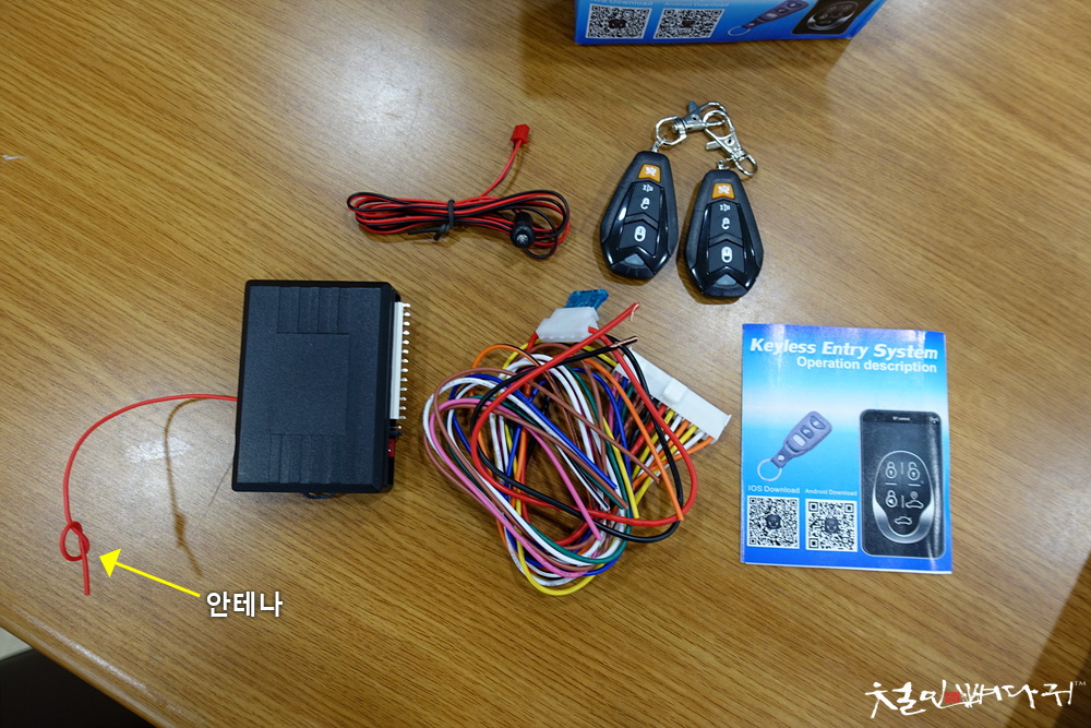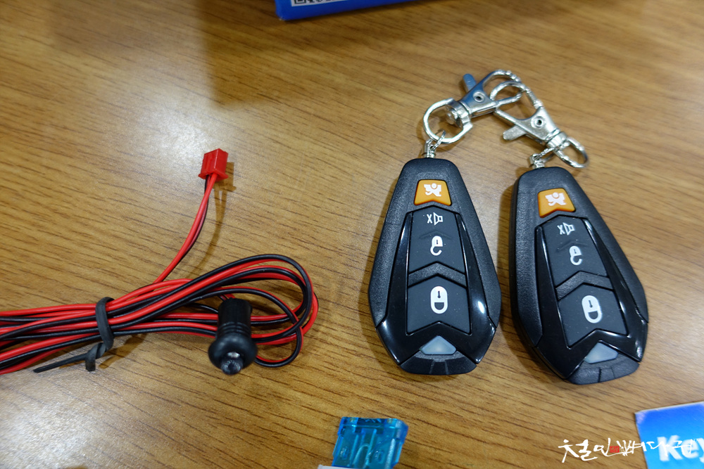친구가 중국 알리익스프레스에서 구매한 자동차용 무선 도어록 장치입니다.