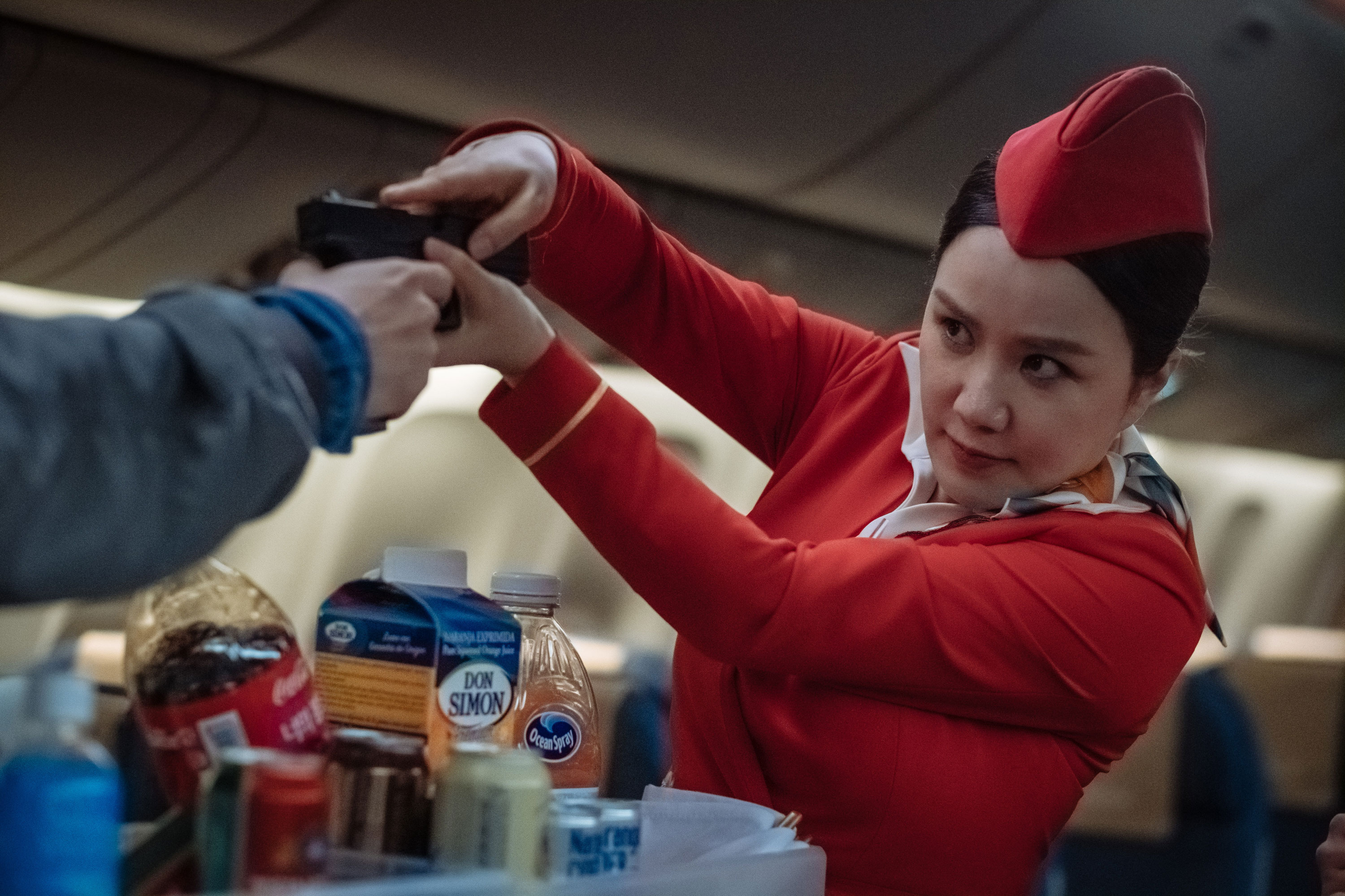 외국 영화의 비행기 안 상황이었다면, 진지함으로 가득 찼을 테지만, 오케이 마담에서의 비행기 내부는