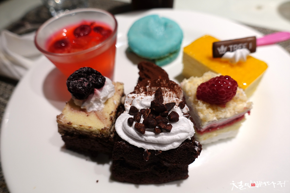 트리제이 더 테라스 뷔페는 아주 많은 종류의 음식들을 제공해서, 기본적인 가격이 높습니다.