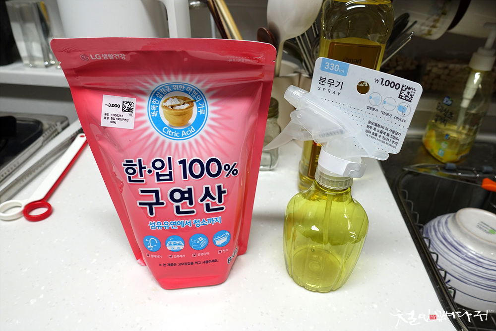 시중에 판매되는 여러 가지 청소제를 사용하는 것보다 여러 사람들의 의견이 구연산 물을 만들어서 뿌려주는 것이