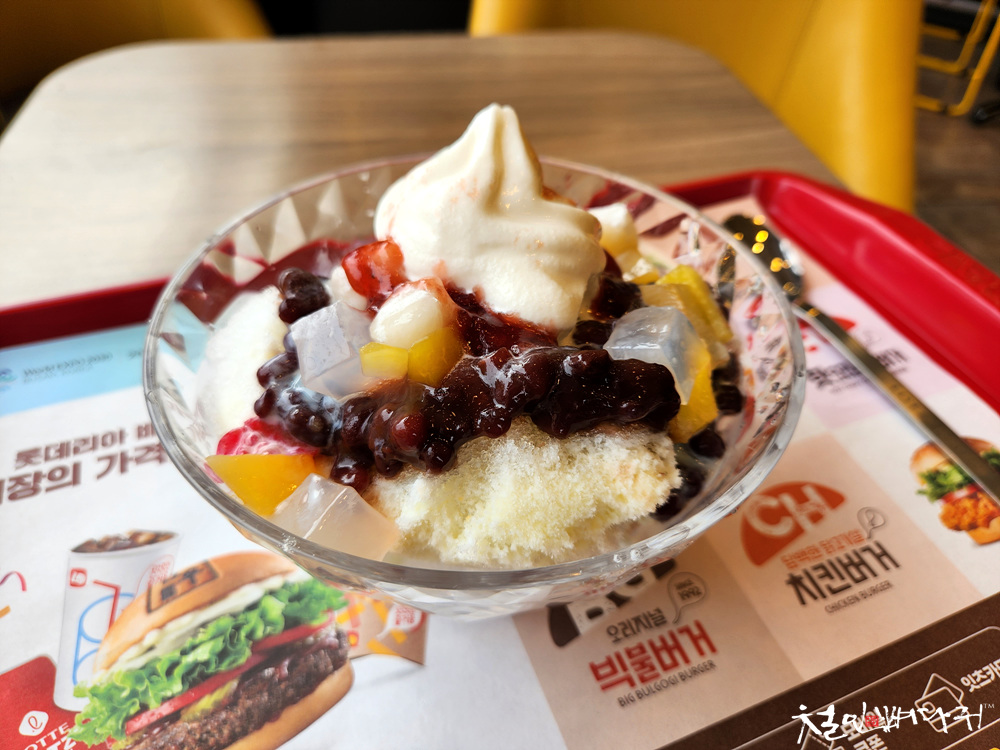 롯데리아로 가서 팥빙수만 먹고 왔습니다.