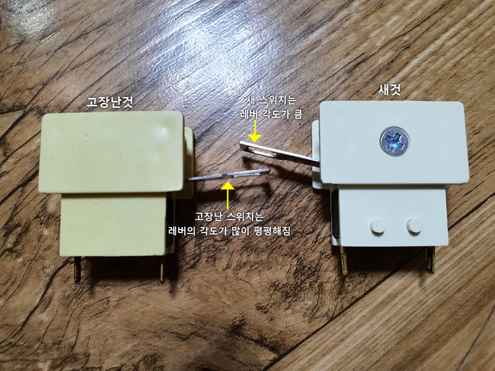 스위치 레버 부분도 새것과 비교해서 차이가 납니다.