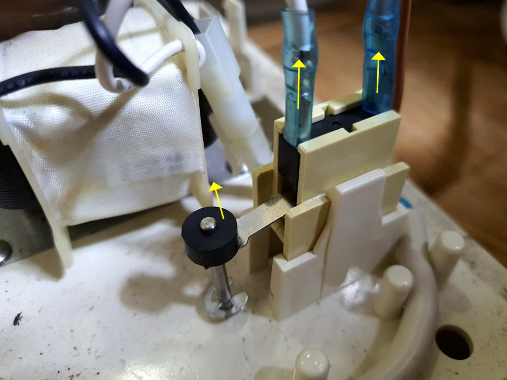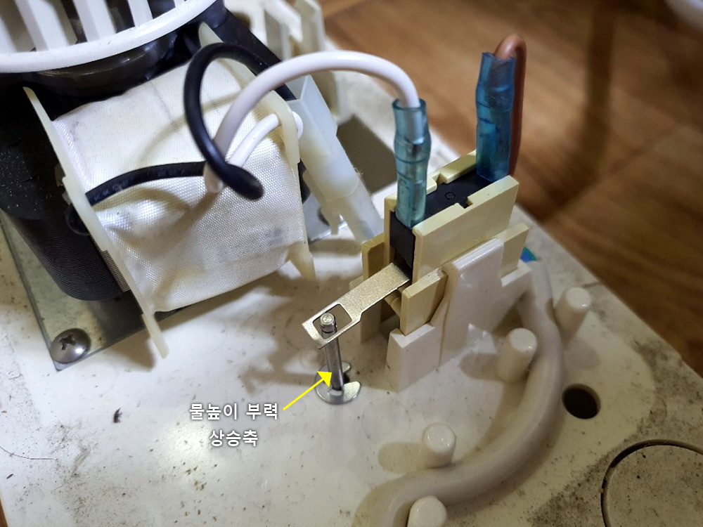 스위치에 꽂혀있는 전선을 2개 뽑아주고, 부력 상승축에 꽂혀있는 고무도 뽑아줍니다.