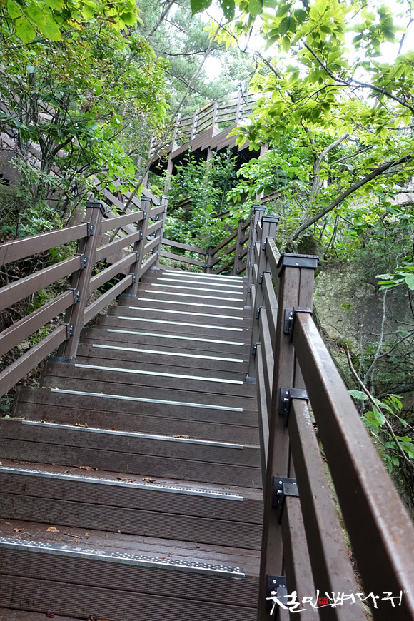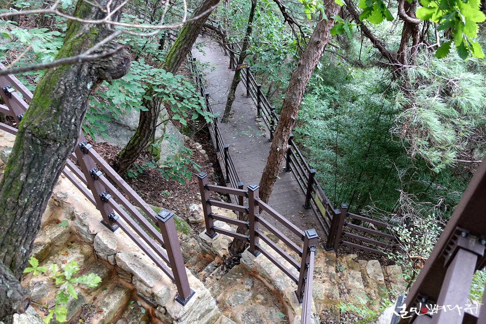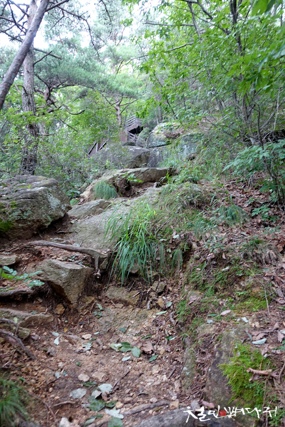 산길과 바위계단, 사람이 만들어 놓은 나무계단 등이 나와서 걷기에는 나쁘지 않았습니다.