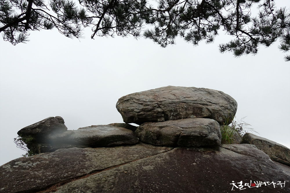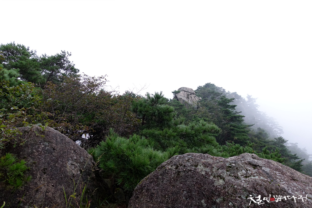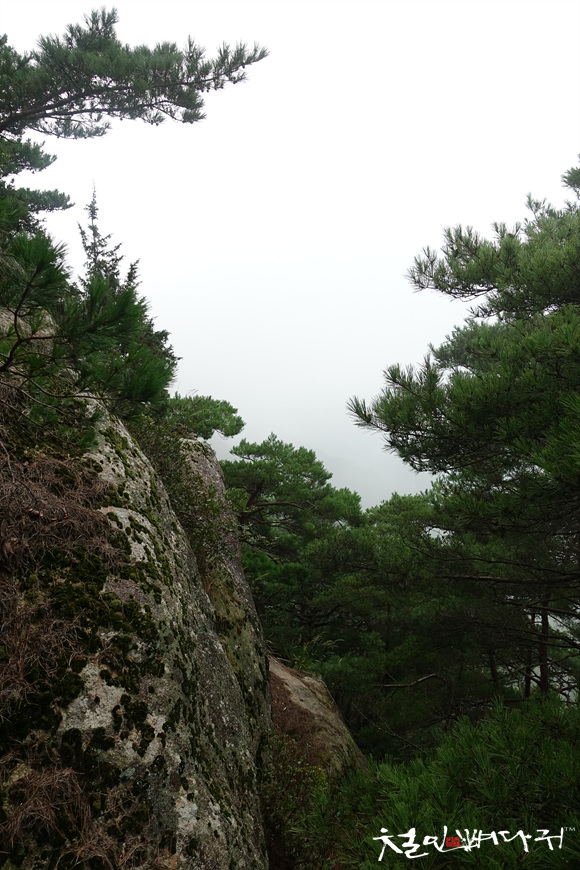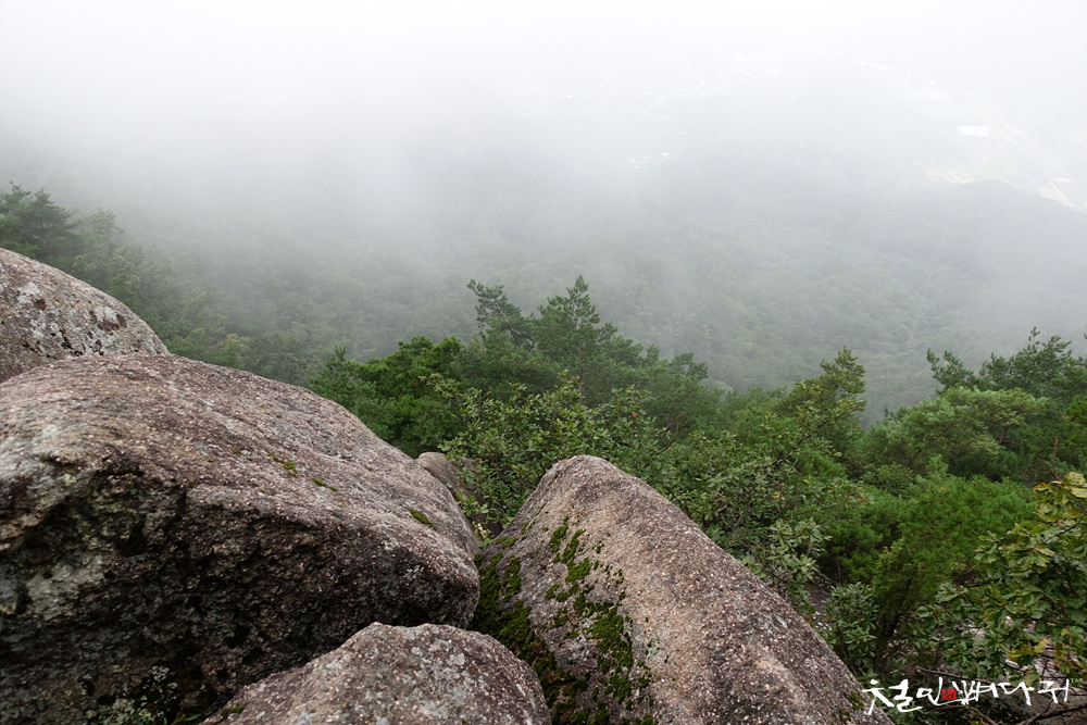 바위사이 넘어 보이는 운무 가득한 풍경입니다.