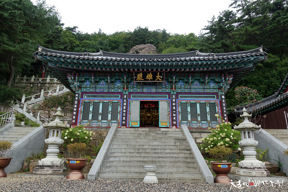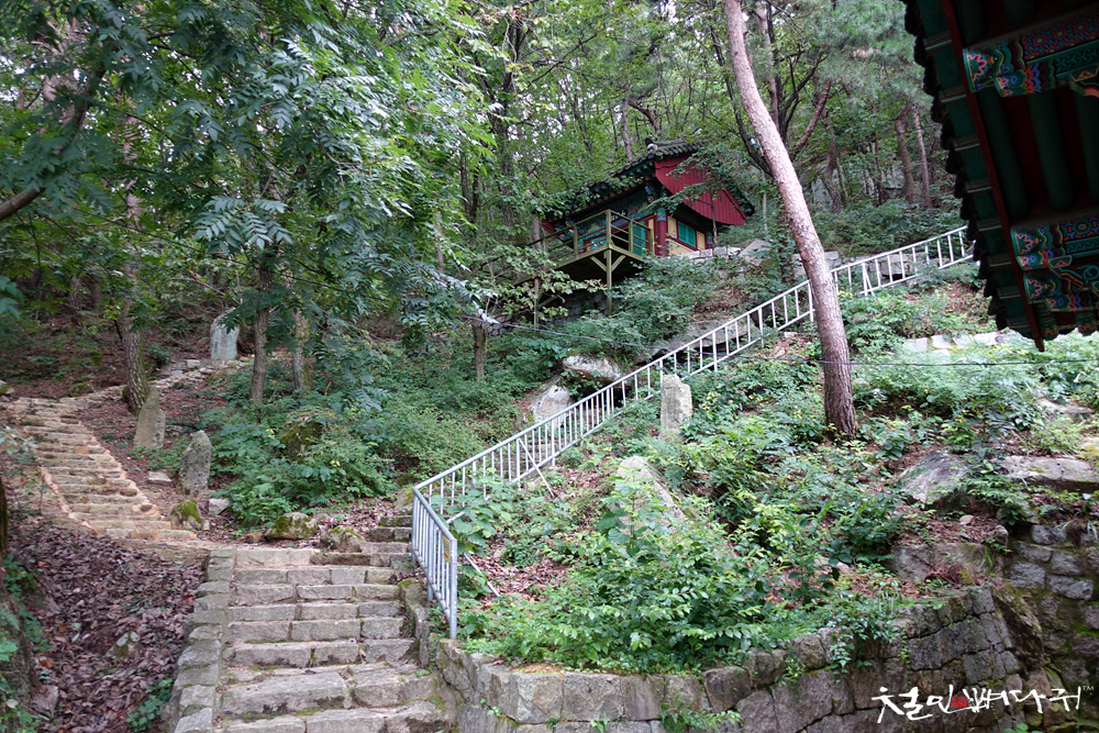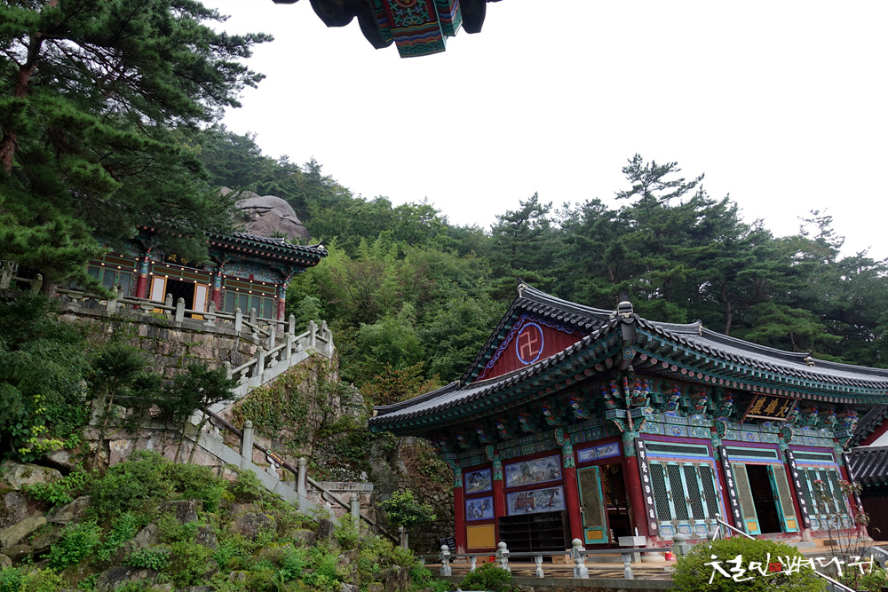 용암사는 아래의 대웅전을 시작으로 위로, 계단을 따라 올라가면서 여러 건물들을 볼 수 있습니다.