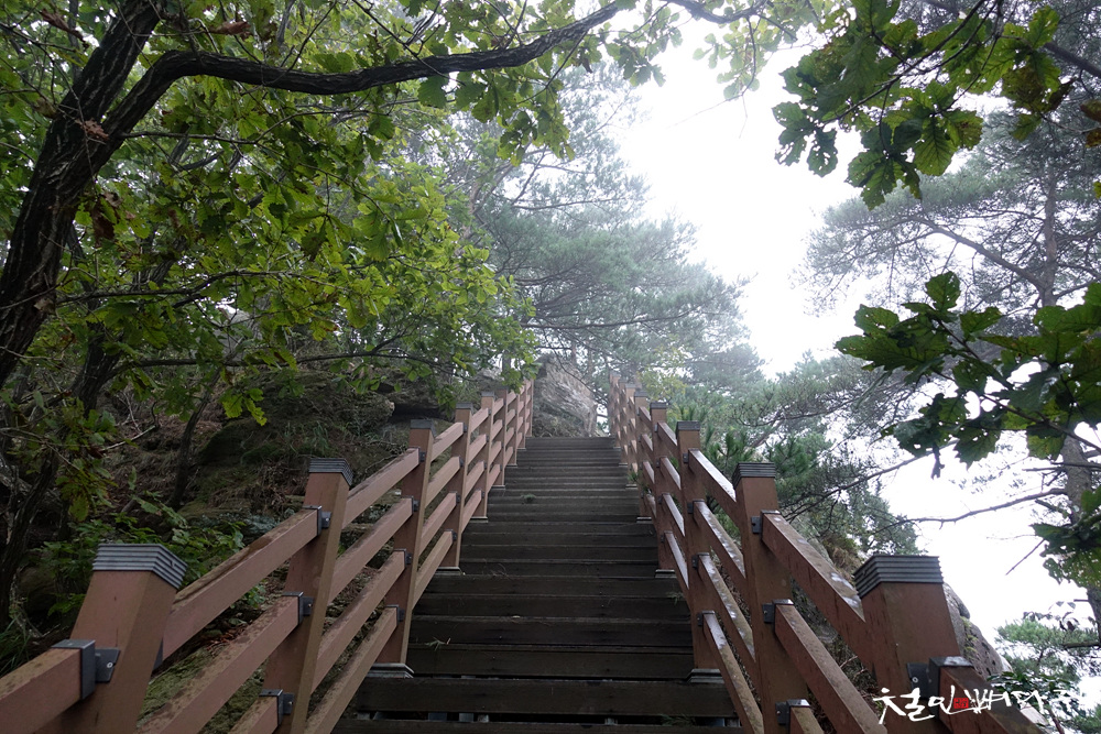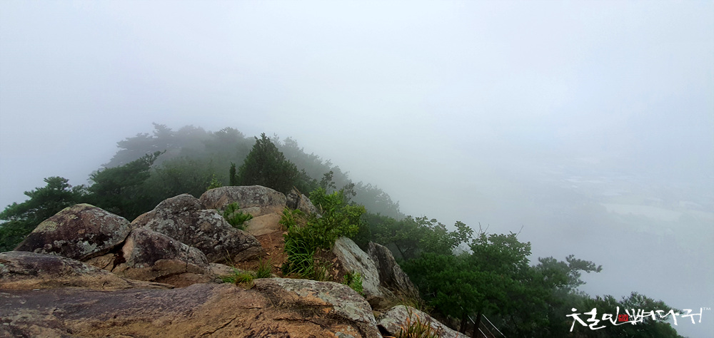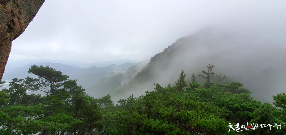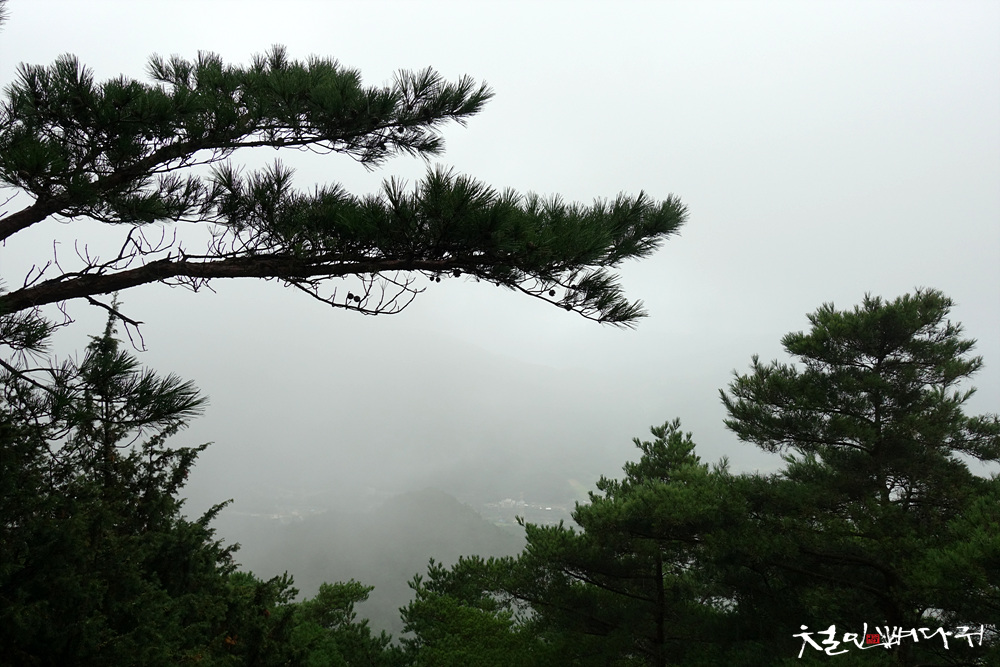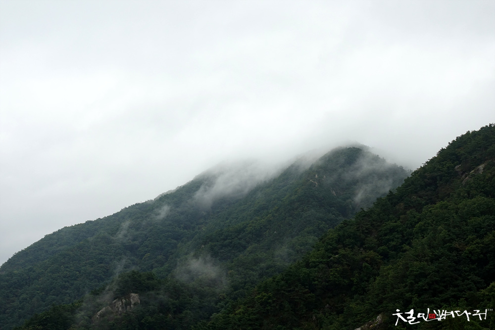 비가 오고 있어서 옆쪽의 장령산에 운무가 걸치고 있습니다.