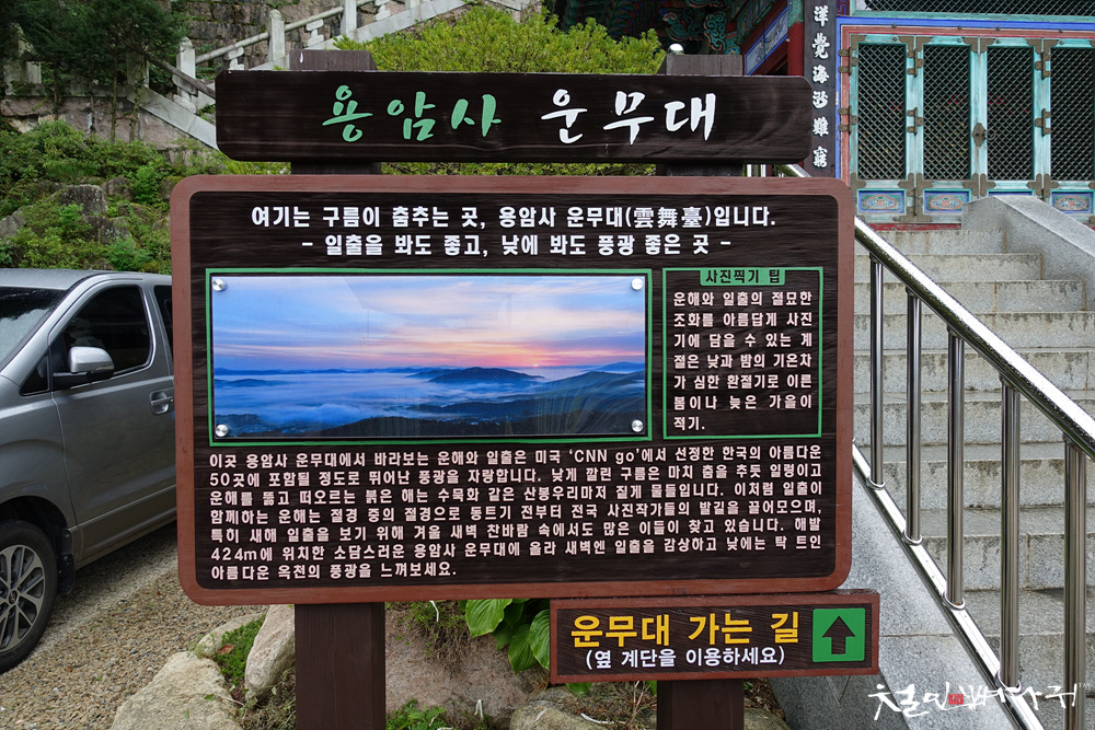 용암사는 일출과 운해 사진을 찍기 좋은 사진포인트가 있는 곳으로, 가볍게 산책하러 오기도 좋은 곳입니다.