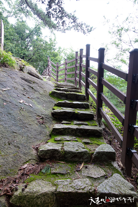 약간의 산길과, 계단들을 따라 올라가는 길입니다.
