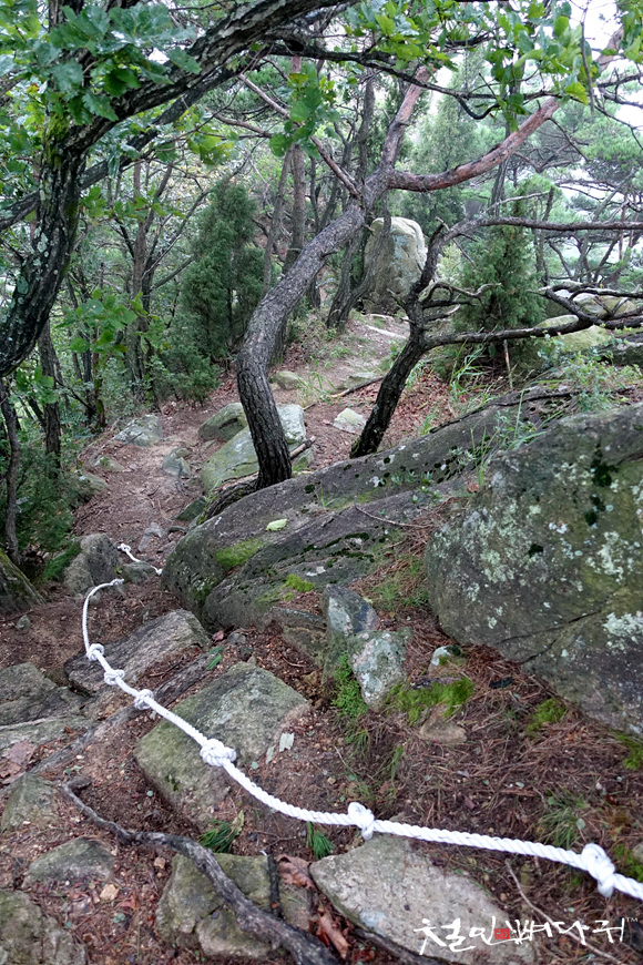 아까 내려왔던 밧줄이 있던 등산로입니다.