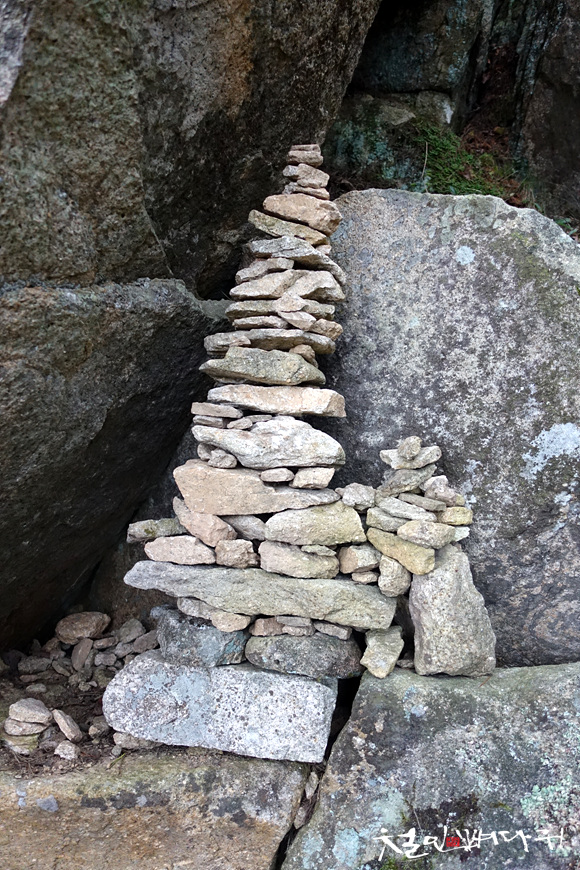계속 걸어서 왕관바위로 가다 보니, 사람들이 쌓아놓은 돌탑들도 볼 수 있습니다.