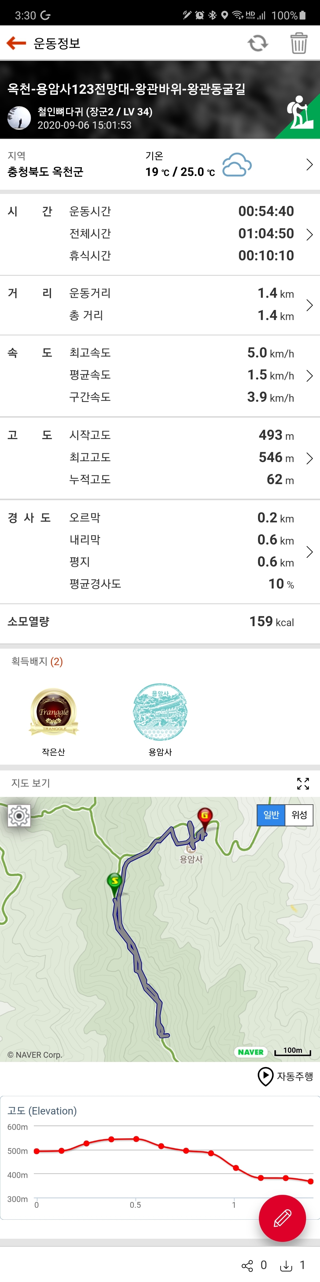트랭글GPS 어플로 등산로 걸었던 것을 측정했는데, 중간부터 시작해서