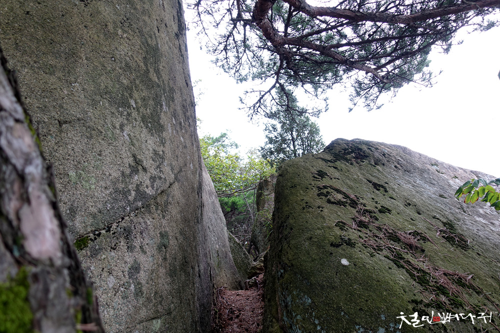 바위 사이의 좁은길틈은 사람한명이 앉은자세로 지나갈 수 있습니다.
