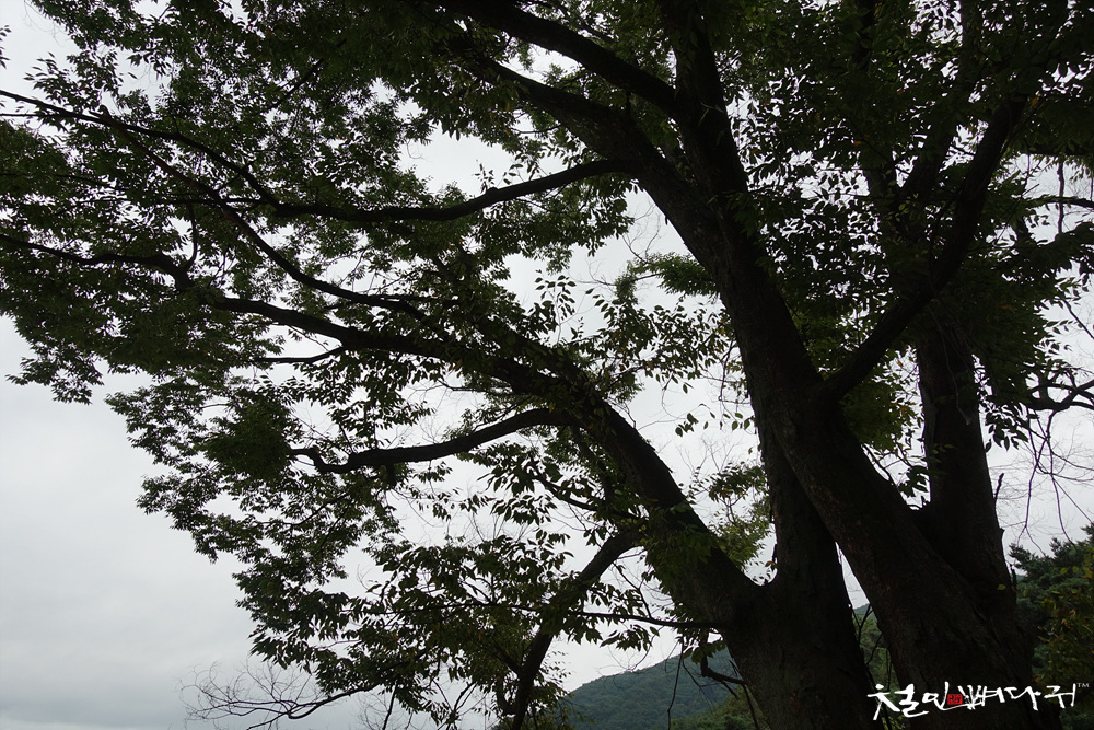 용암사 입구에 커다란 나무가 있는데, 아주 크고 높습니다.