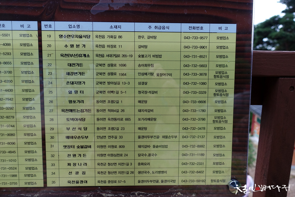옥천에 왔으면, 맛있는 식사도 하라고, 옥천 맛집에 대한 정보도 몇곳에 걸려있었습니다.
