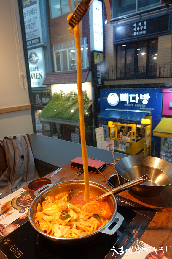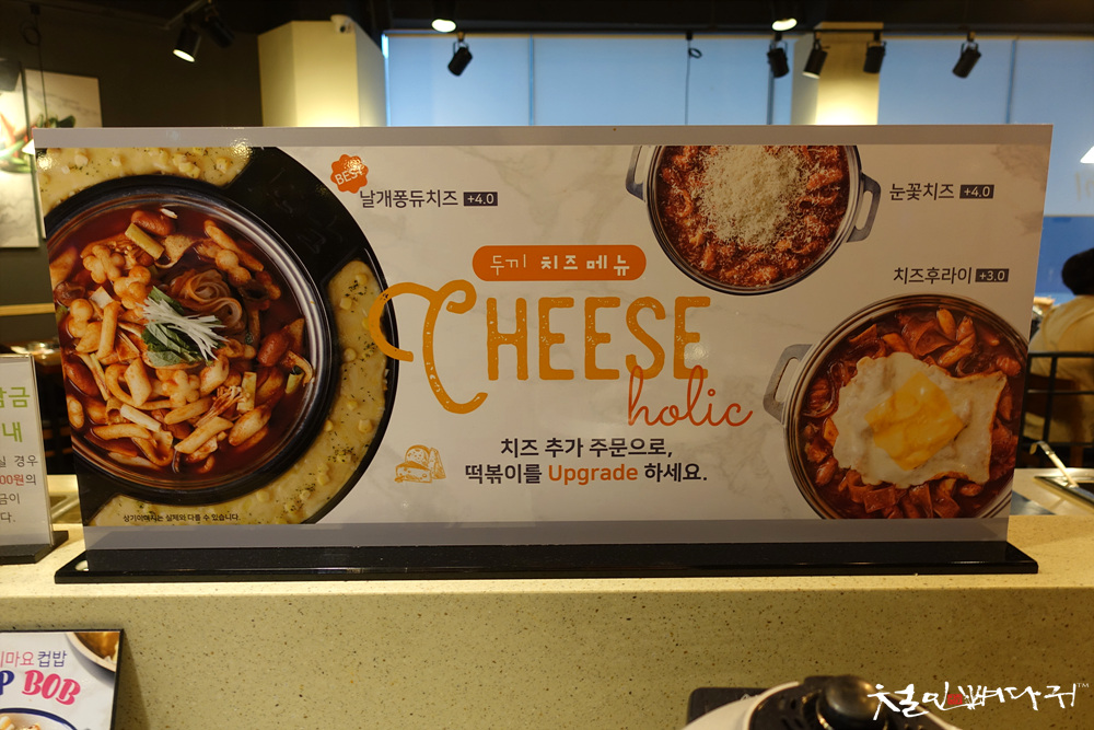 떡볶이, 볶음밥 같은 것을 만들어 먹을 수 있고, 옵션으로 추가금 지불하면 치즈를 많이 먹을 수 있기도 합니다.