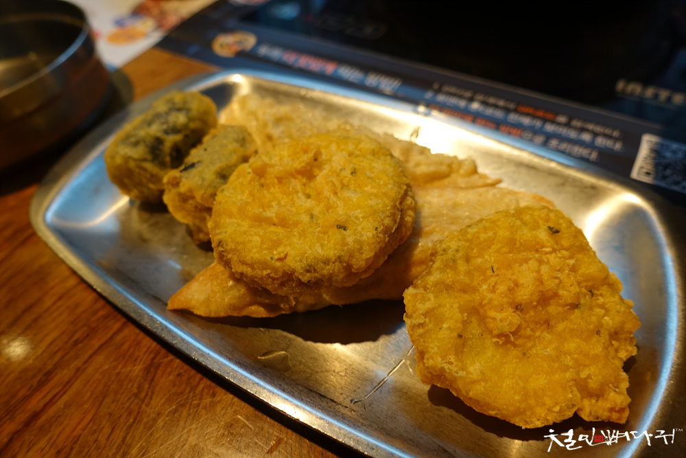 떡볶이가 끓는 동안 어묵, 튀김을 먼저 먹었습니다.