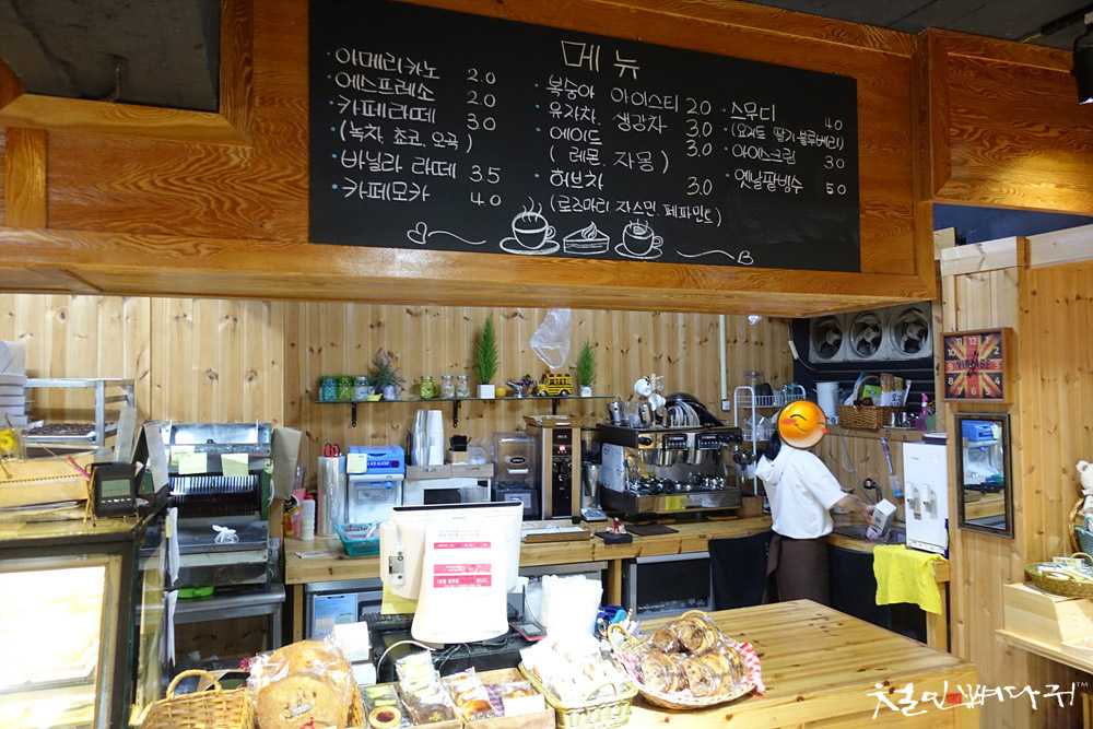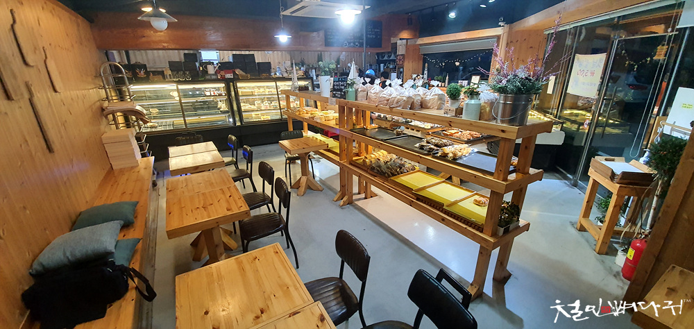 빵집 내부는 절반은 빵 진열한 곳이고, 절반은 테이블들이 있어서 구입한 빵이나 커피 같은 음료들을 마실 수 있습니다.